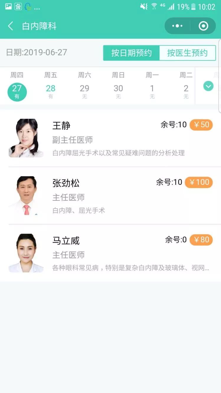 ③选择预约日期及预约医生,当然你也可以挂当日号哦