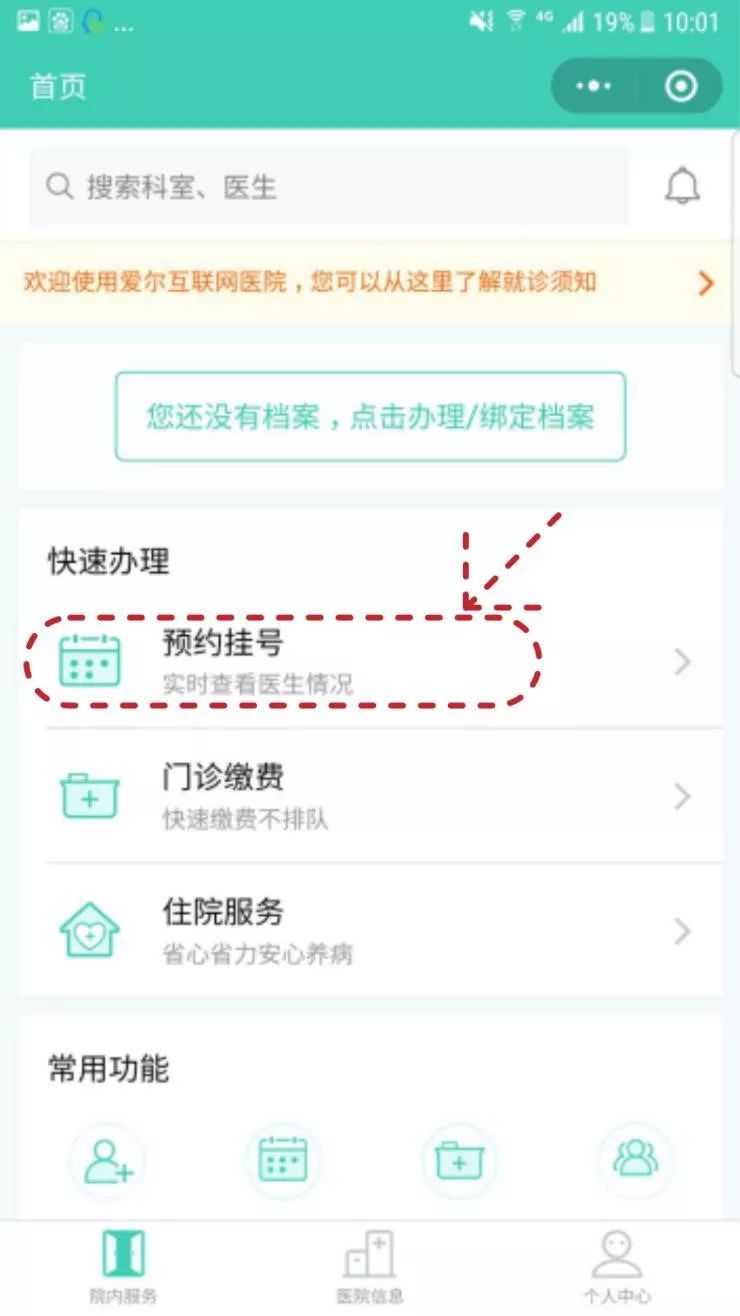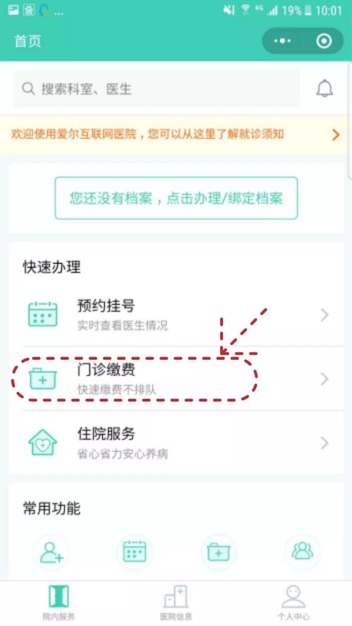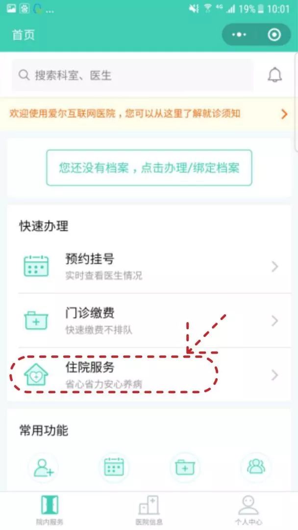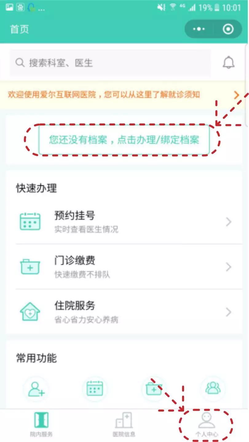 ① 进入网上医院,点击办理/绑定档案